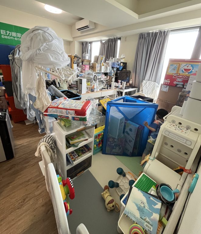 那天,我們面前是一個被搬家箱、雜物與家具完全佔滿的空間——幾乎沒有地方可以站,連要走進客廳都得側著身、踩著紙箱前進。